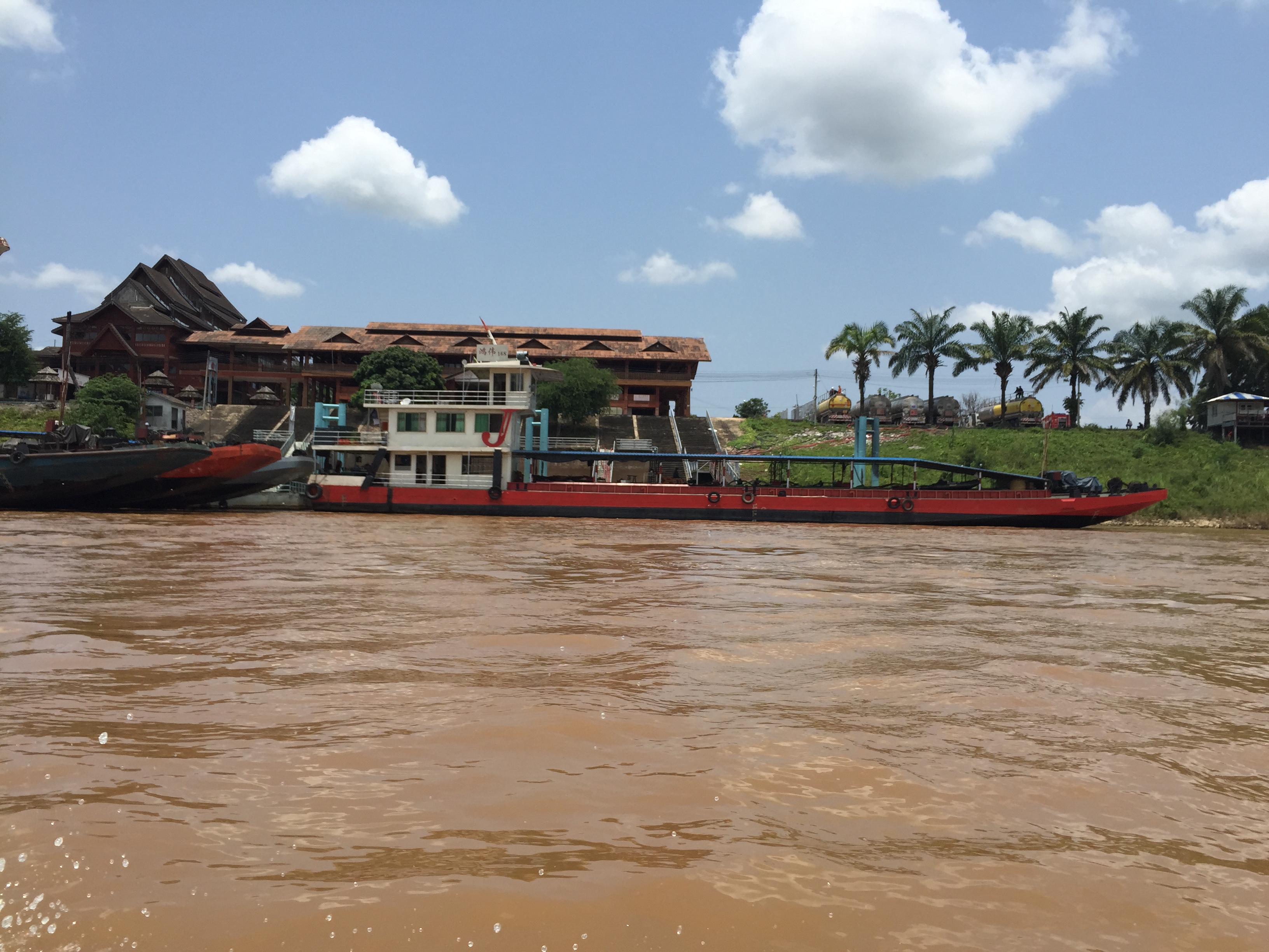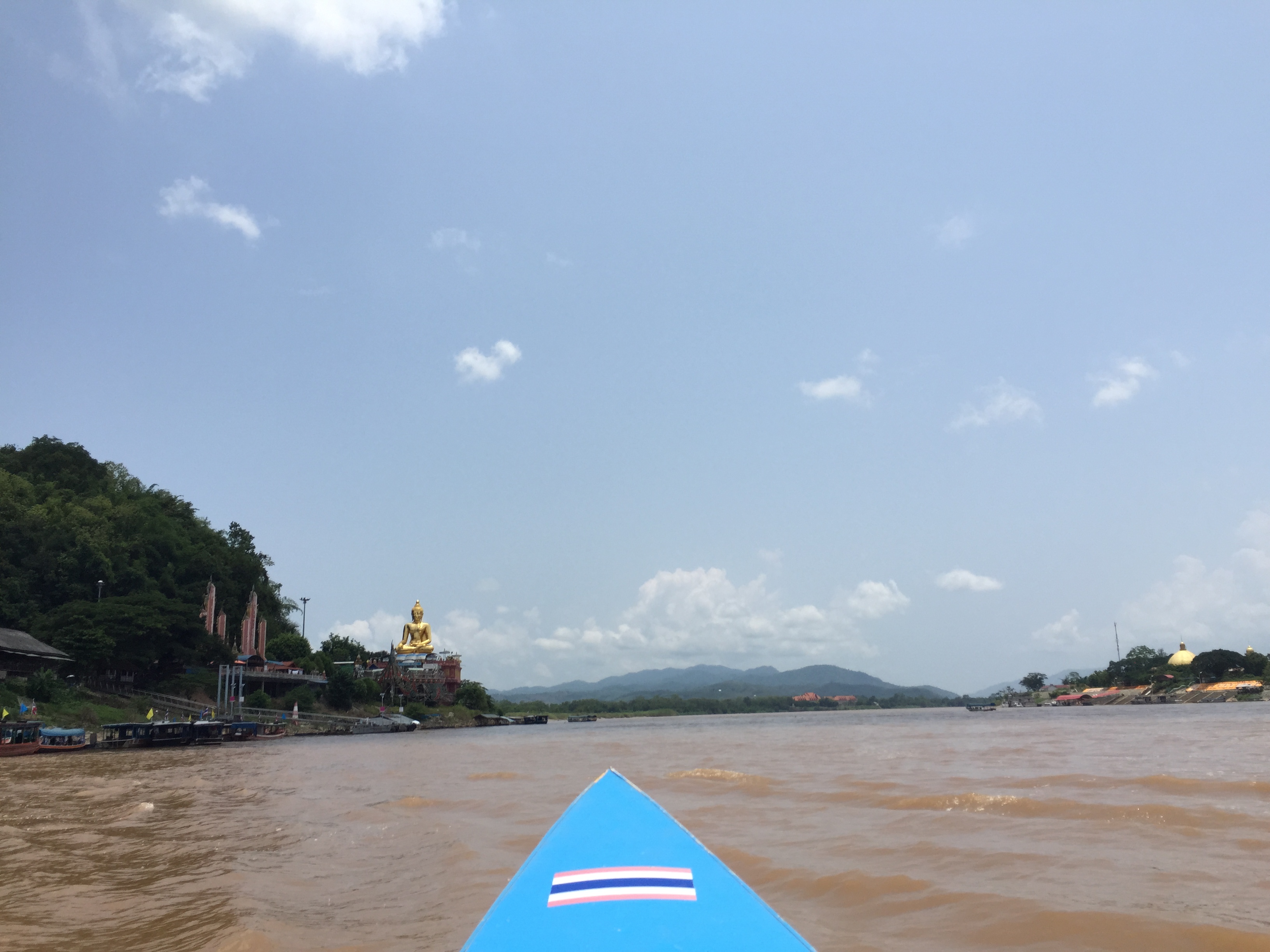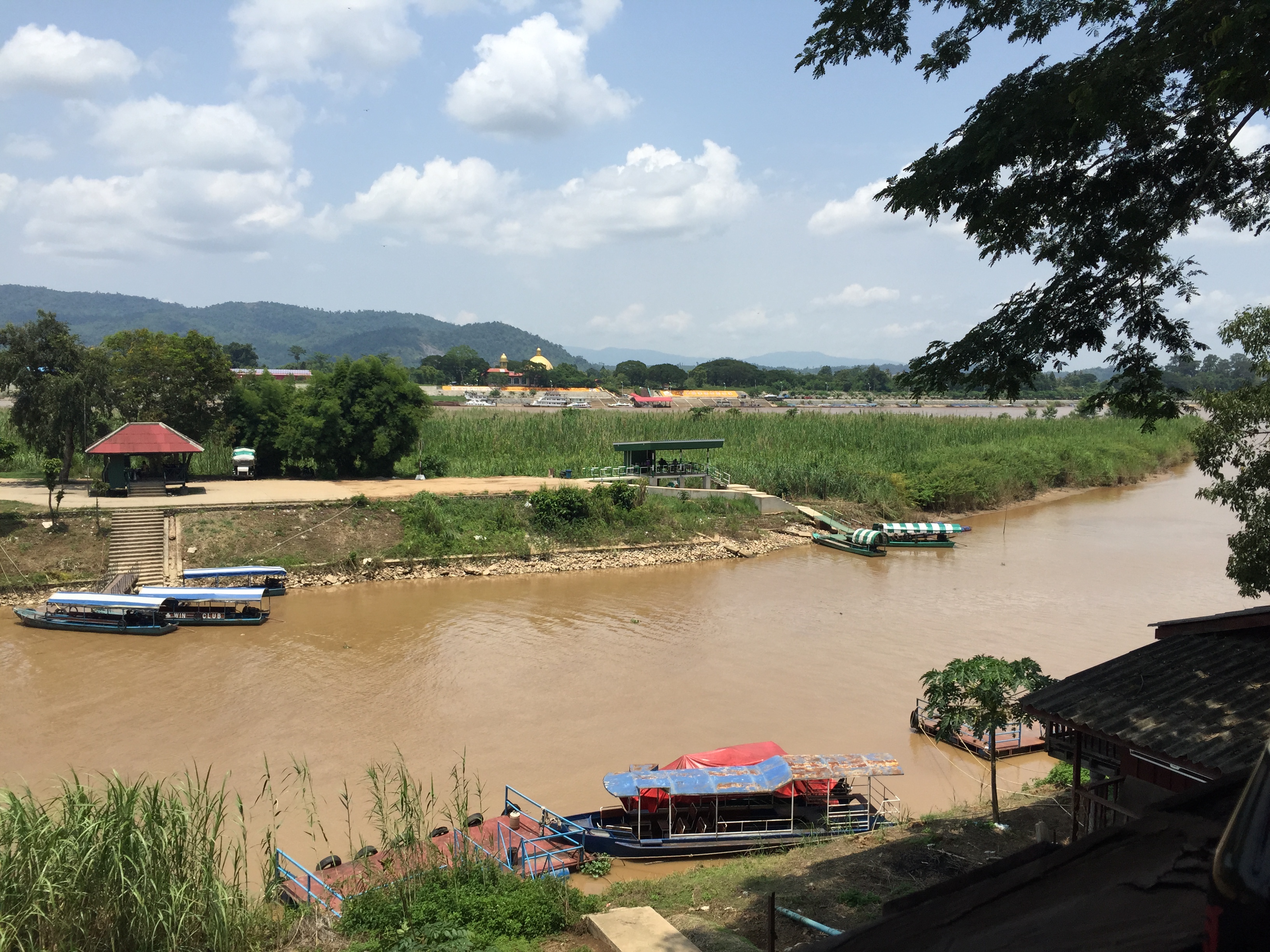 In early July 2015, as part of my first trip to Chiang Rai Province from my home in Chiang Mai, my friend Ratiya and I took a 90 minute ride in a scheduled 15 seater van from downtown Chiang Rai to a boat pier near Chiang Saen, Thailand. We paid 400 baht each (now about $11.25 USD each) for the boat ride, were fitted with life preservers, and boarded our 15 foot or so wooden boat. As we slow down, you can hear the boat captain explain the various waters and borders to Ratiya in Thai, which she then translates for me. Towards the end of the video, you’ll notice a number of passenger vessels along the Laos shoreline. I understand that one can schedule a river cruise, dinner cruise, etc. Also, I think the gleaming new development on the Laos shoreline was a casino, but I’m not sure. Thus some of those boats could be shuttles bringing folks over from Thailand to gamble. We were moving along at a pretty good clip and may have covered 10 miles or so. Outside of a possible collision with another boat (which can and does occasionally happen, more so in Florida I think), the experience is not very risky.
